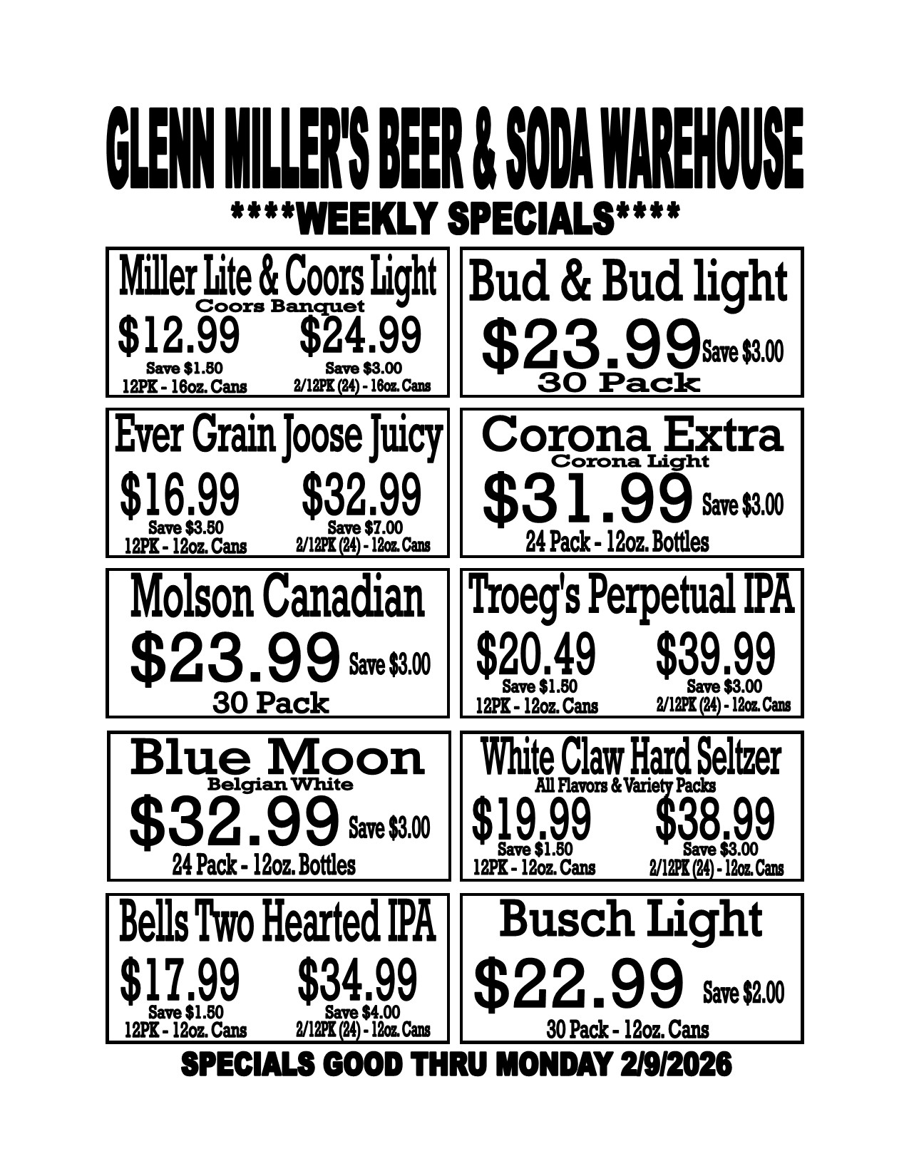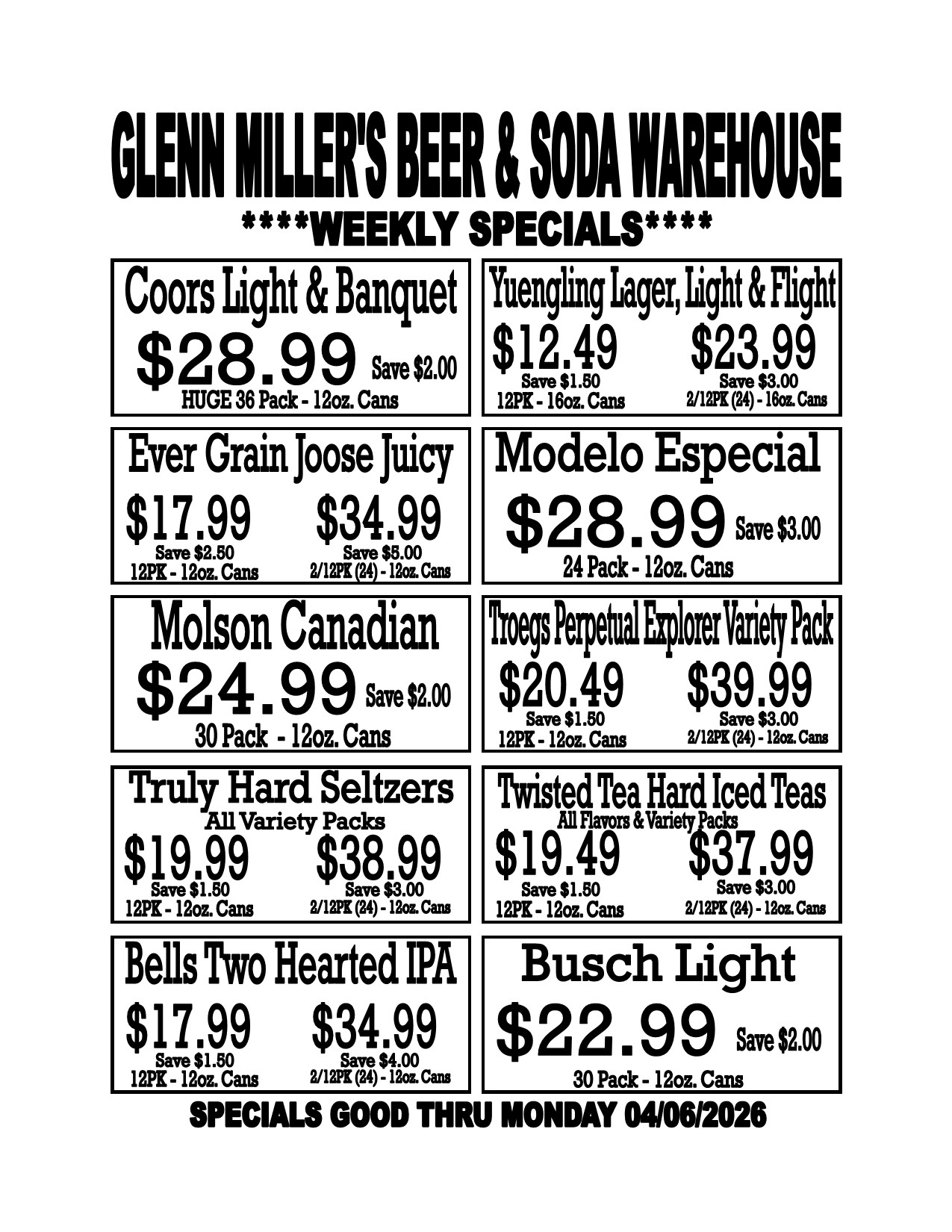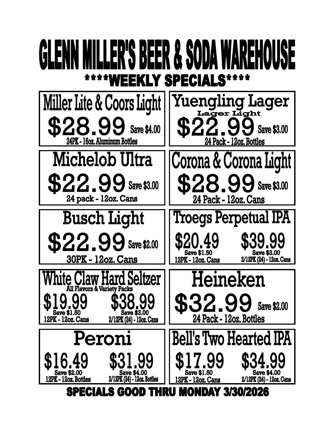 Looking for a beer deal? Look no further than Glenn Miller's Beer & Soda Warehouse in Lemoyne, PA! If you're looking for a hard-to-find beer there's a good chance we have it or can locate it for you.